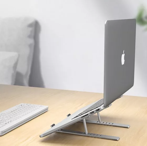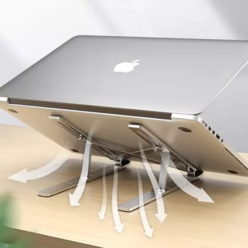MBuilt-in air vents at the bottom of our Adjustable Aluminum Laptop Stand help ventilate hot air from your laptop or tablet, so you won’t have to worry about overheating.